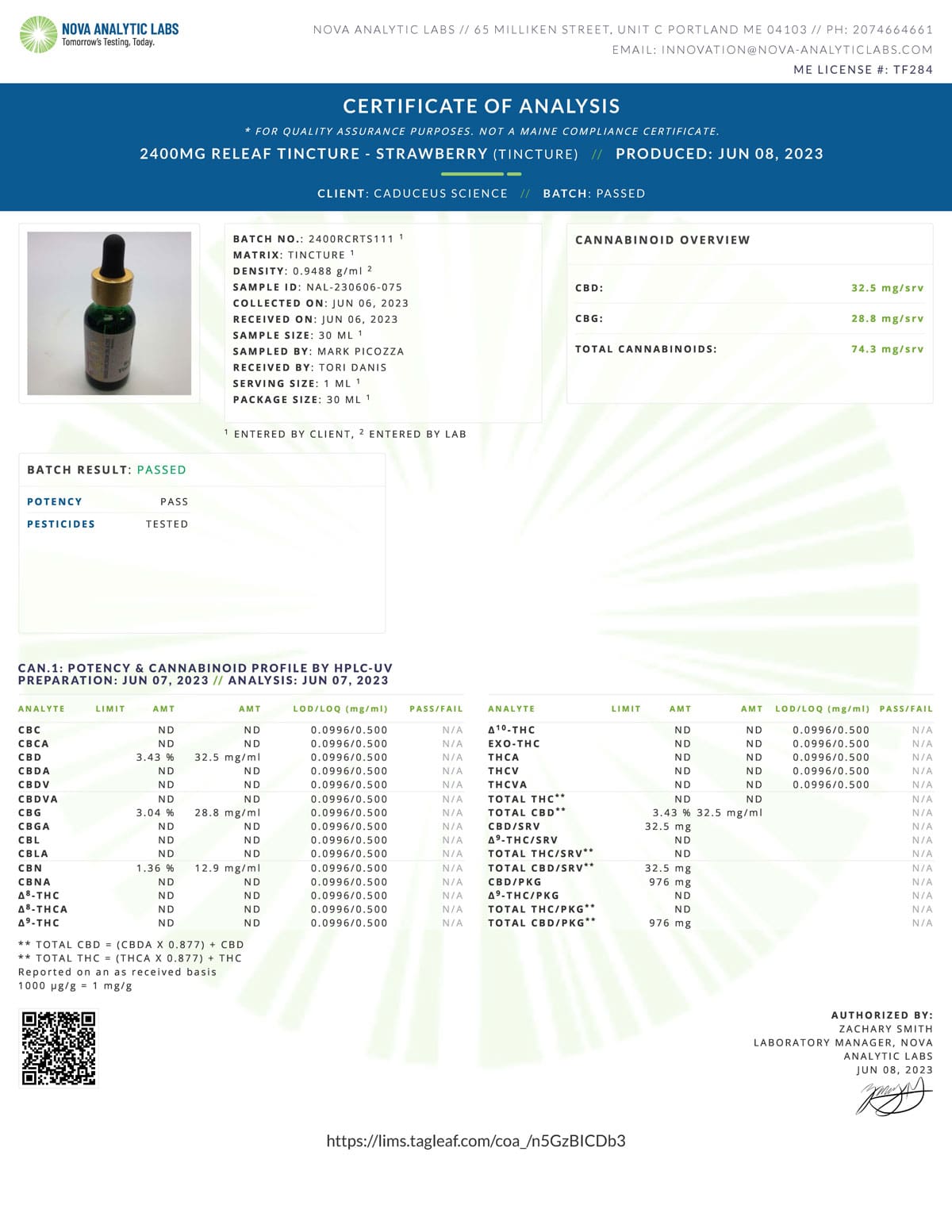 Releaf Tincture Strawberry 2,400mg